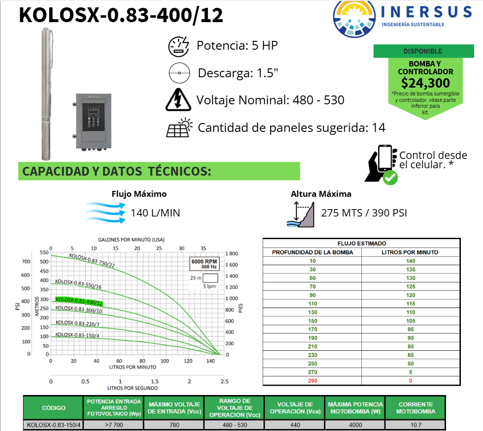 Incluye cable plano sumergible de 2 metros