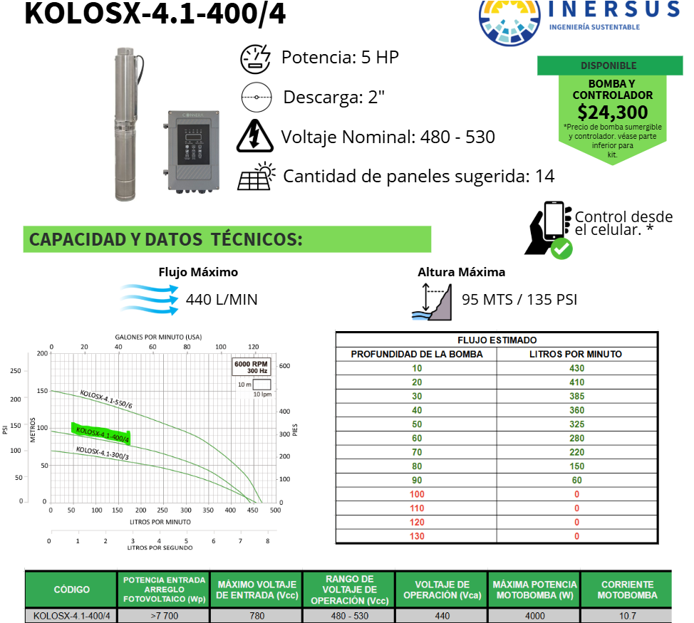 Incluye cable plano sumergible de 2 metros